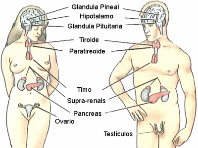 Sistema Hormonal ou endócrino: Composto por hipófise, tiroide, suprarrenais e pâncreas. Para determinar o sexo feminino do masculino, temos os ovários e os testículos, respetivamente. Este sistema regula diversas funções, tais como, reprodução, crescimento, comportamento e emoções, energia , termorregulação, metabolismo e quantidade de água e sais minerais.